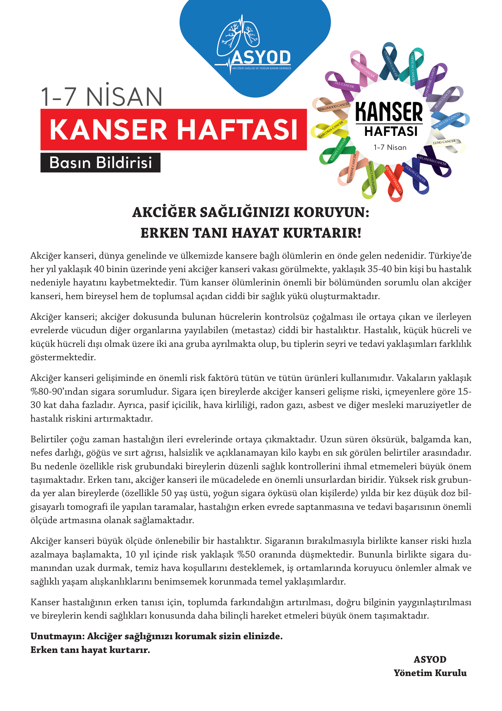 1 Ağustos Dünya Akciğer Kanseri Günü