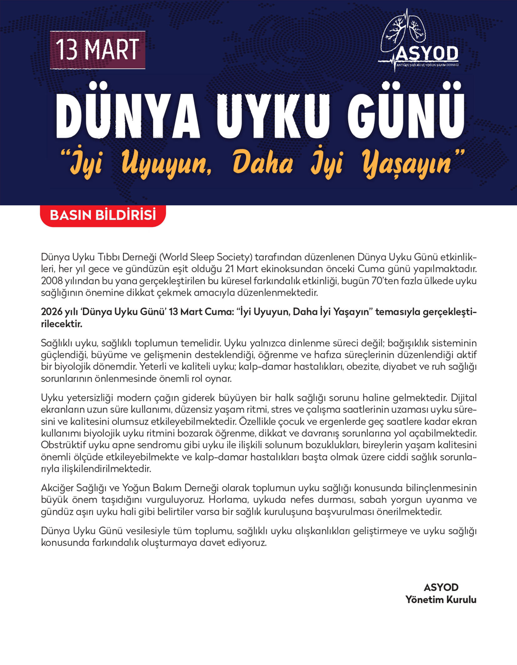 13 Mart 2026 Dünya Uyku Günü